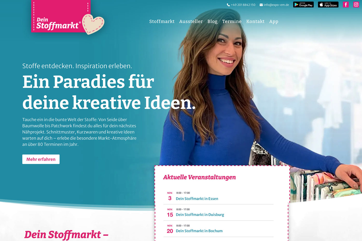 Neben der neuen Webseite empfehlen wir dir unbedingt unsere kostenlose Stoffmarkt-App – erhältlich in allen gängigen Stores.